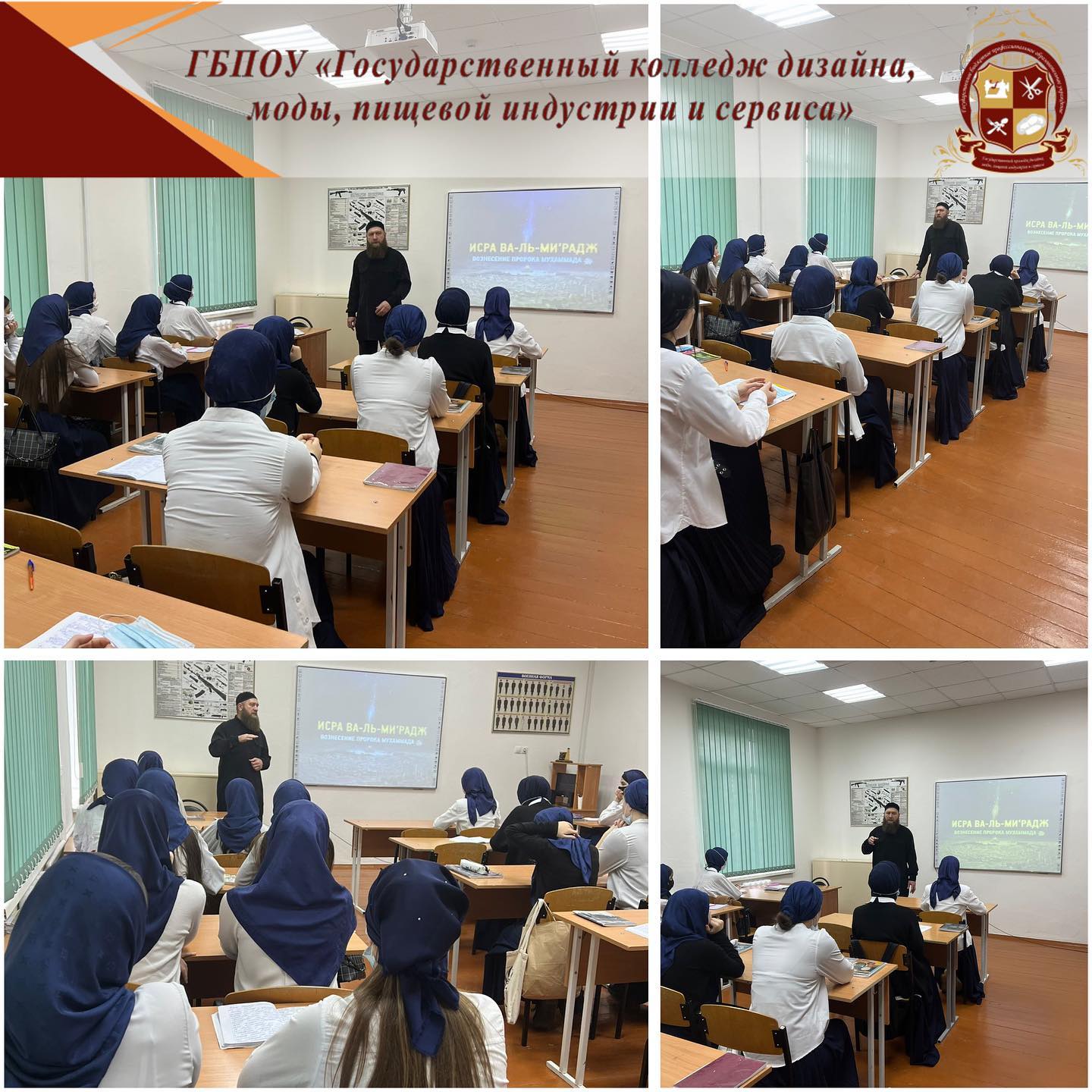 28.02.2022Старшим воспитателем Магомедовым А.Ш. ГБПОУ «Государственный колледж дизайна, моды, пищевой индустрии и сервиса» проведена беседа на тему: «Чудесное переселение Пророка (да благословит его Аллах1 и приветствует) из Мекки в Иерусалим».