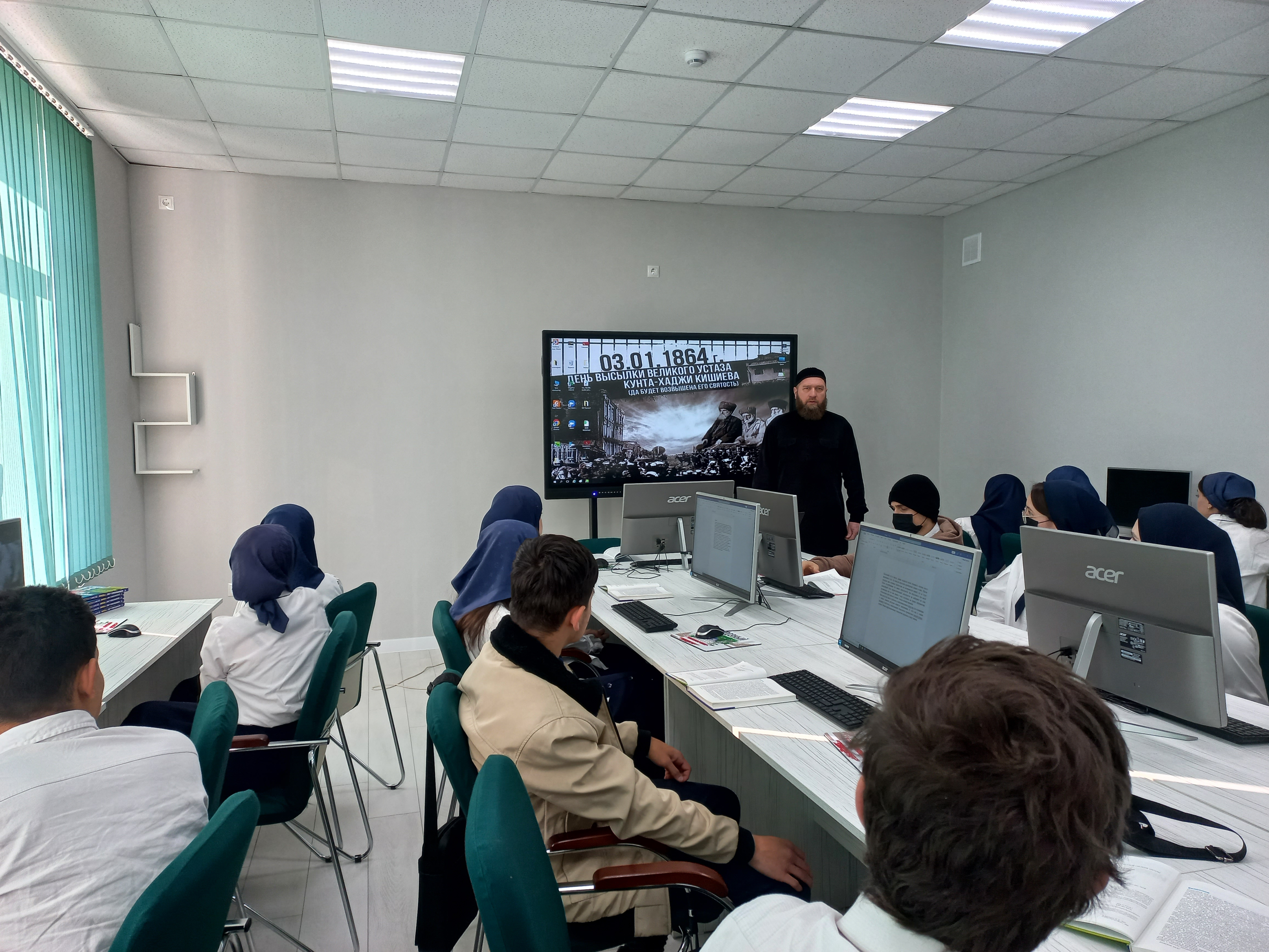 Аслан Шахидович рассказал студентам, что 3 января 1864 года был арестован и сослан в ссылку в город Устюжна Новгородской губернии Шейх аль- Иласхани. Это одна из самых печальных дат в истории чеченского народа. Шейх аль-Иласхани призывал поразить зло добротой и любовью, жадность- щедростью, предательство- искренностью. В его учении- глубокая мысль: чем сильнее сопротивление, тем более жестоким и злым становится враг. Единственный способ противостояния- негрубая сила, а работа ума. Возвышение человеческой души. Насилие и ненависть только вгонит мир в тьму и хаос.