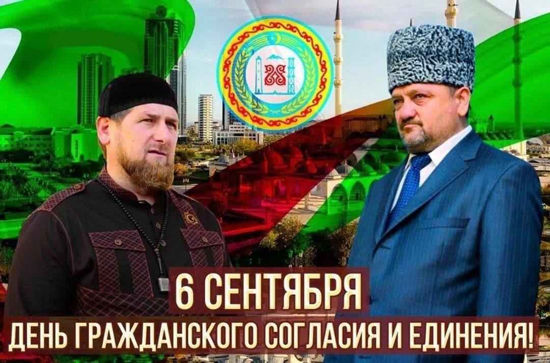 Друзья, доброго времени суток! День Чеченской Республики! 6 сентября мы отмечаем знаменательный праздник – День Чеченской Республики! 6 сентября для всего чеченского народа является символом национальной гордости и памяти. Этот день напоминает нам о ценности каждой минуты мирной жизни. Мирная жизнь в нашей республике основана на заслугах победителей. Мы отдаем дань уважения ПЕРВОМУ ПРЕЗИДЕНТУ ЧЕЧЕНСКОЙ РЕСПУБЛИКИ, ГЕРОЮ РОССИИ АХМАТ-ХАДЖИ КАДЫРОВУ (ДАЛА гIазот къобал дойла цуьнан!) и тысячам его верных соратников, которые отдали свои жизни за наше с вами благополучие. Республика зажила новой жизнью – более интенсивными темпами стали возводится жилые дома, объекты социального и культурного значения, образования и спорта. Сегодня Чеченская Республика – динамично развивающийся промышленный, аграрный, инвестиционно-привлекательный регион России, с высоким уровнем развития институтов гражданского общества и социальной сферы. Искренне поздравляем Главу Чеченской Республики, Героя России Рамзана Ахматовича Кадырова и всех жителей нашей республики с Днём гражданского согласия, единения и примирения! Желаю мира, добра и благополучия! ДАЛА ТIАЬХЬЕ БЕРКАТЕ ЙОЙЛА ВАЙ!