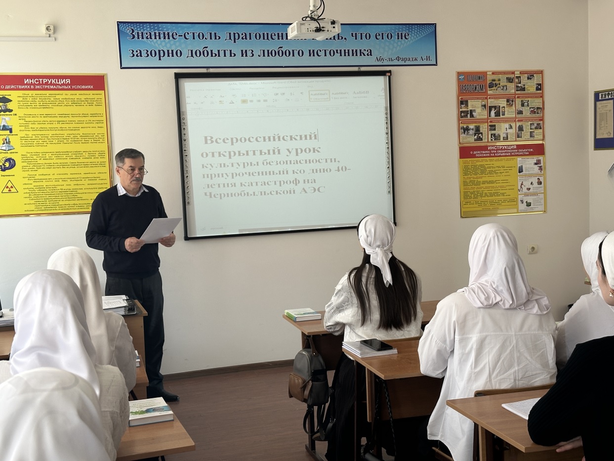В Чеченском государственном педагогическом колледже в рамках всероссийских памятных мероприятий состоялся открытый урок культуры безопасности, приуроченный к 40-й годовщине катастрофы на Чернобыльской АЭС.